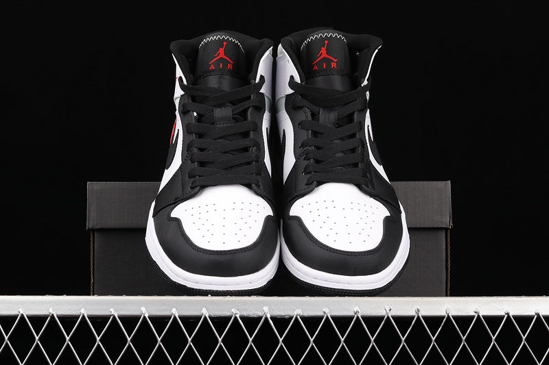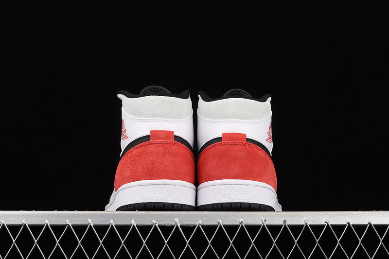 Jordan 1 Mid White Black Red Spruce